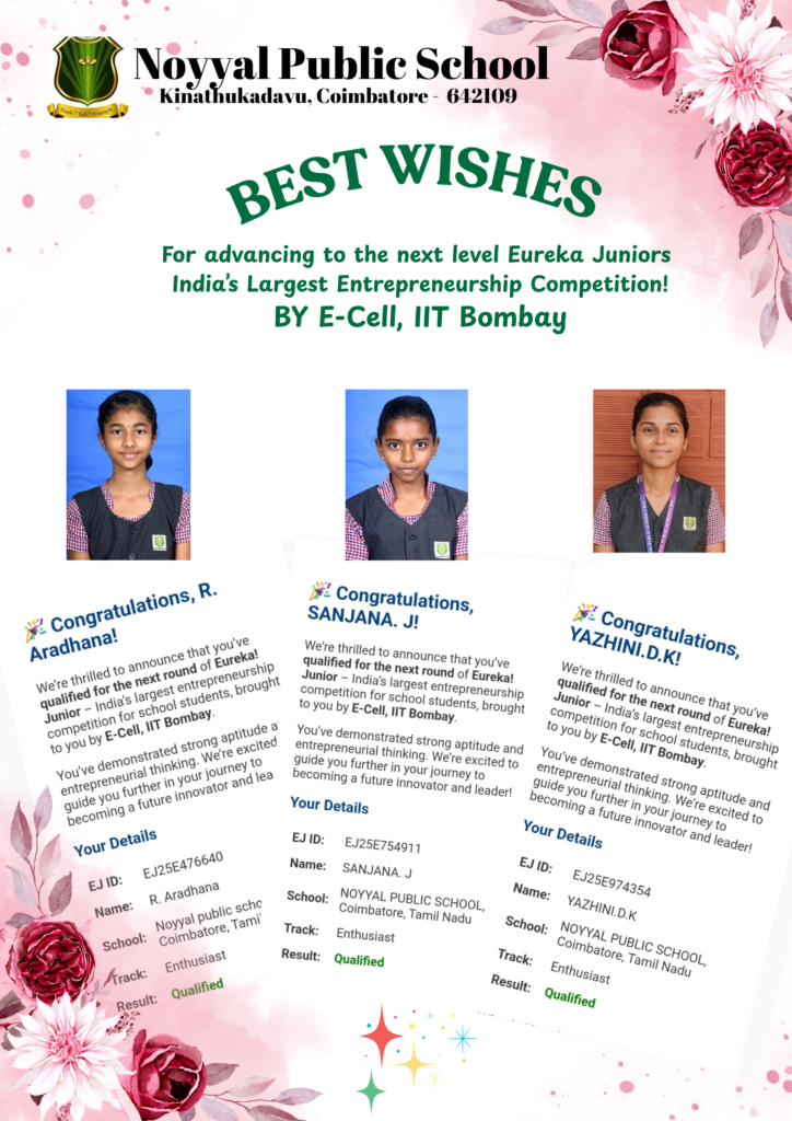 Congratulations to Yazhini, Sanjana, and Aradhana for advancing to the next level of Eureka! Junior – India’s largest entrepreneurship competition conducted by IIT Bombay.